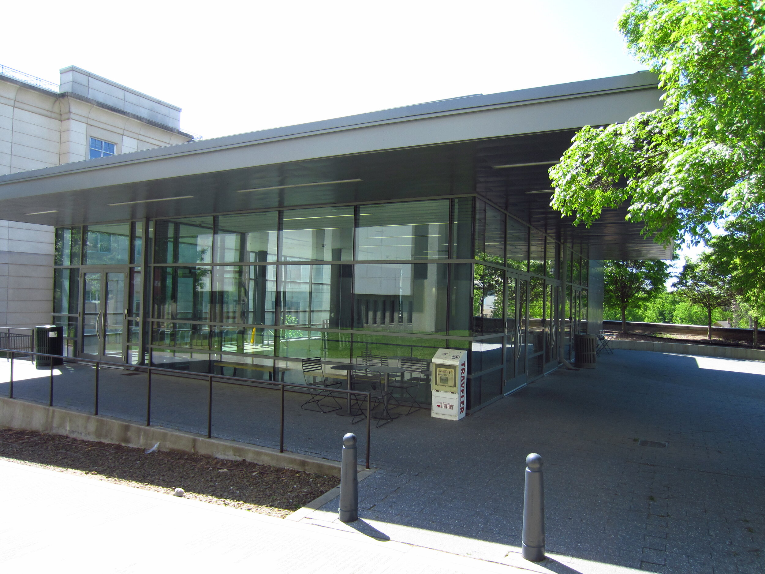 This new construction building is designed to recede into the landscape and includes planted green roofs which allow the continuation of the natural topography across the site. The building includes two auditoriums, one with 475 seats and one with 265 seats, and an entrance pavilion located on the upper tier of the building. With the vegetated roofs, an efficient exterior envelope, and high-efficiency building MEP systems, this building achieved LEED Silver Certification.